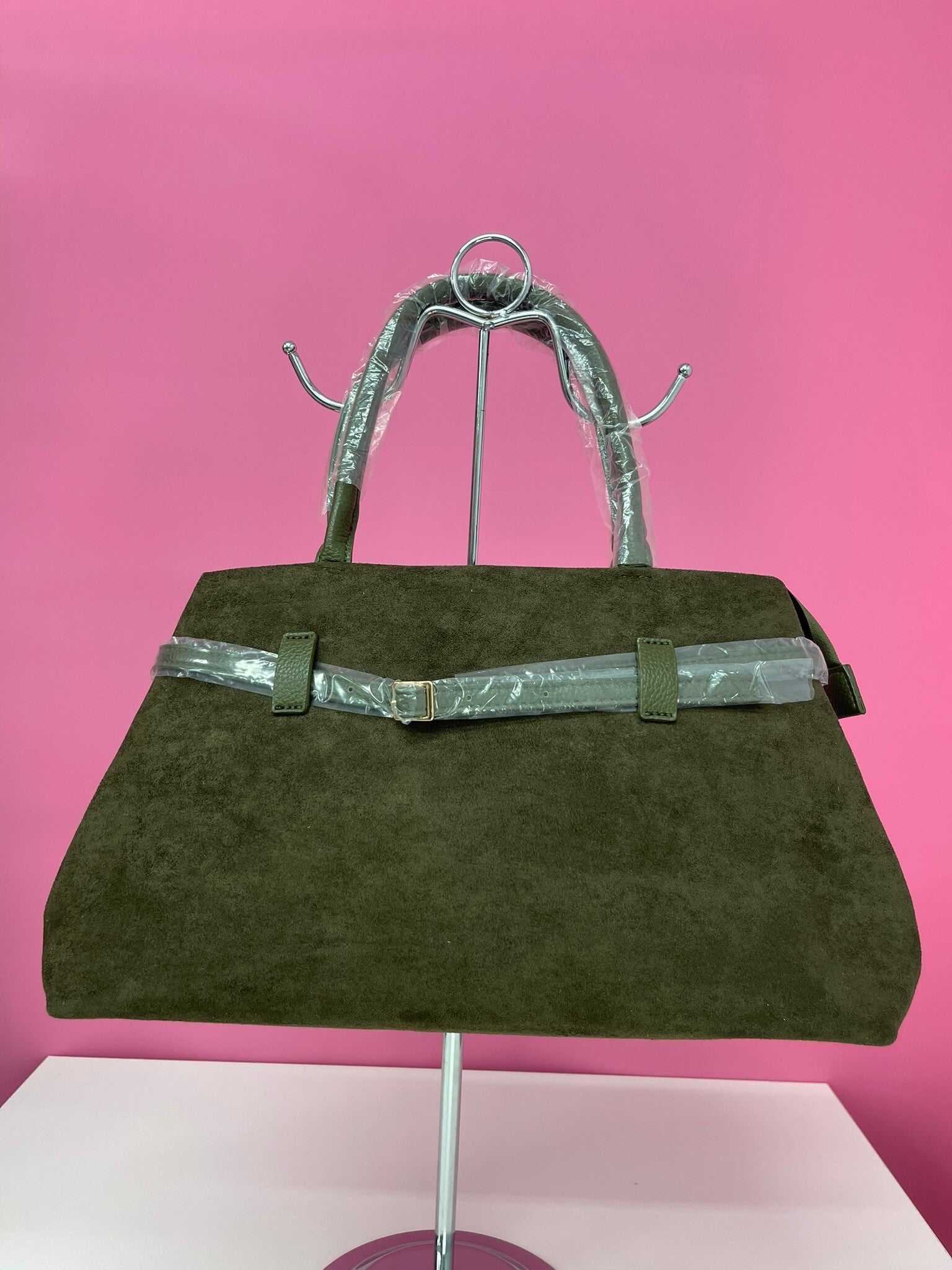 Bolso piel de melocoton verde